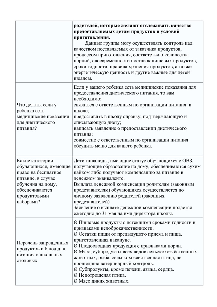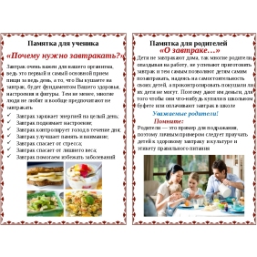 Памятка родителям о здоровом питании школьника